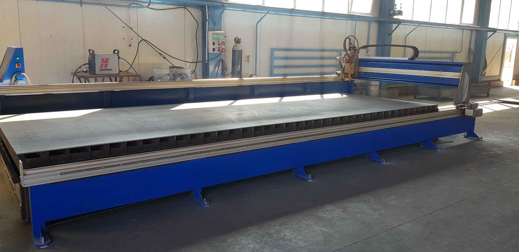 Model: Legas Seria F Dimensiuni utile: 6000 mm X 2500 mm Echipare: 2 X Arzatoare oxigaz Zinser , Plasma Hypertherm Powermax 85